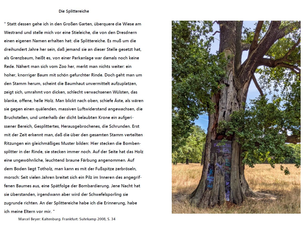 Infoblatt für die Fotografien der Splittereiche 1 – 3 im Großen Garten in Dresden. Mitglieder-Ausstellung im KUNO Kunsthaus Nordstemmen: https://kuno-ev.org/rueckblick/#gid=1&pid=2